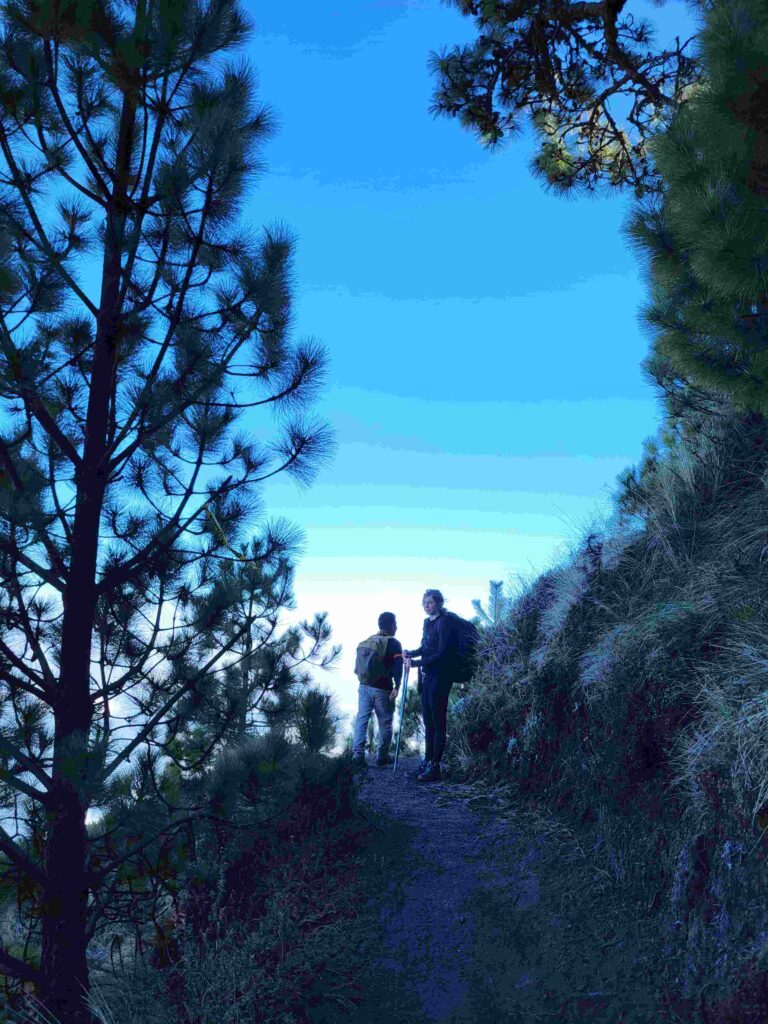 It’s technically the easiest part of the hike, with most of the intense uphill behind you. Locals call this section “Guatemalan flat,” which basically means smaller rolling hills that are still… uphill.