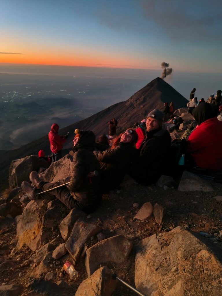 The hike to the summit takes about 1.5 hours, and while it’s challenging, the payoff is huge. Watching the sunrise over Antigua Guatemala with eruptions happening beside you is something you won’t forget.